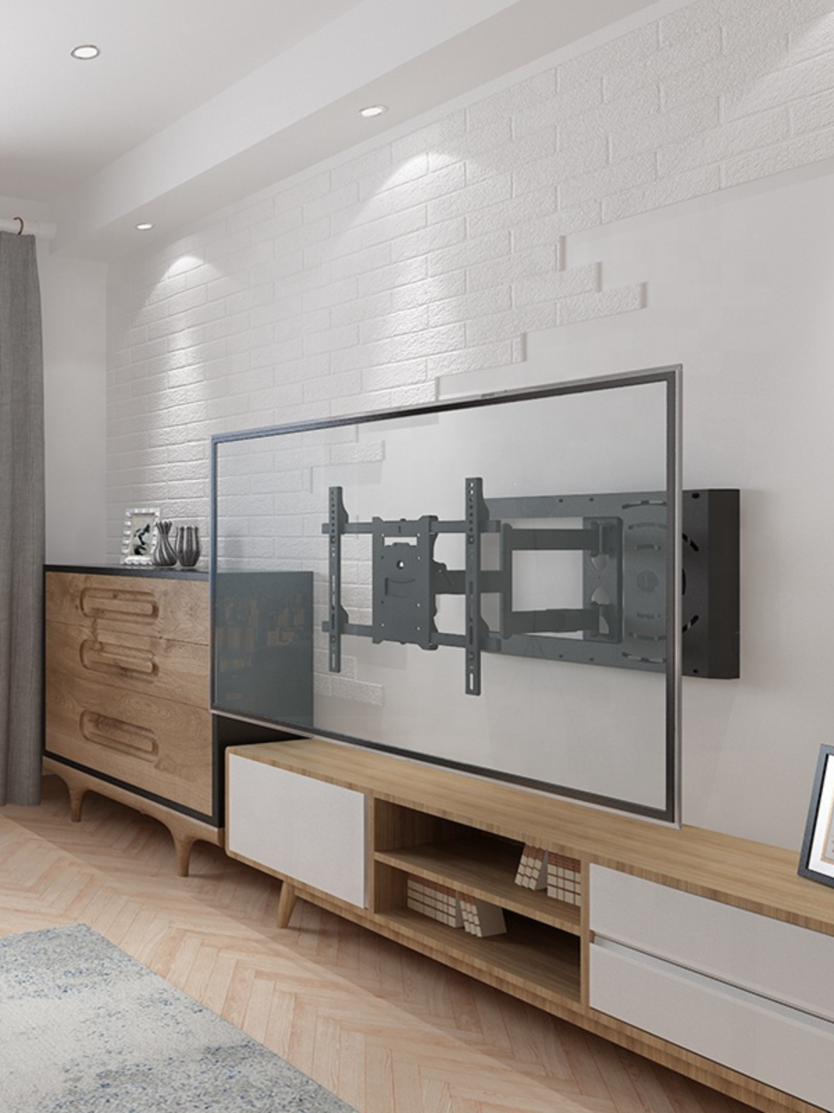 - Support amovible Murivo™ : parfait si vous souhaitez orienter votre TV, l’incliner ou ajuster sa distance au mur. Il offre davantage de flexibilité, notamment dans les grands salons, pièces ouvertes, chambres ou bureaux.